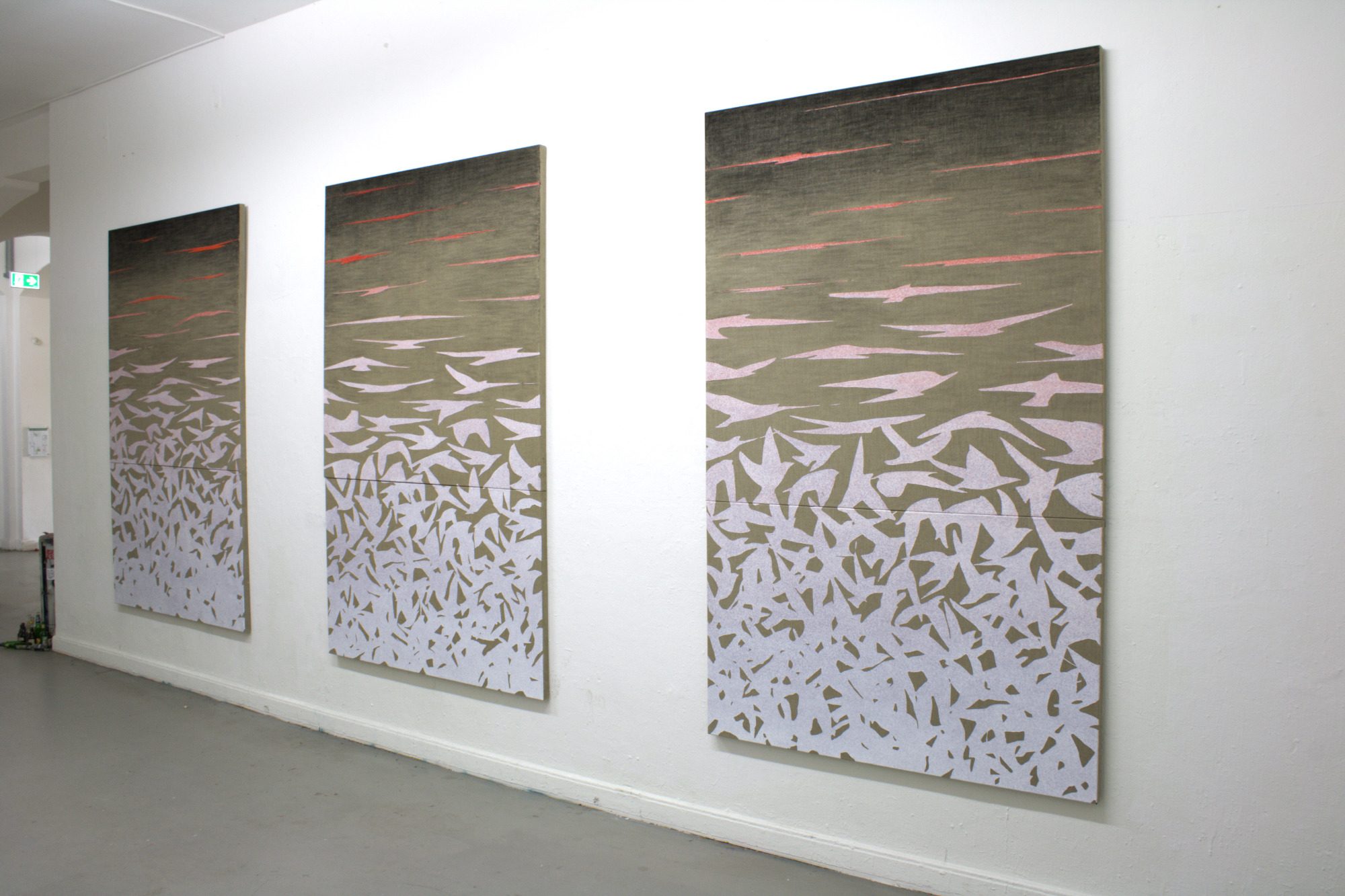 Öl und Kohle auf Leinwand, je 290x180 cm, 2024-2025