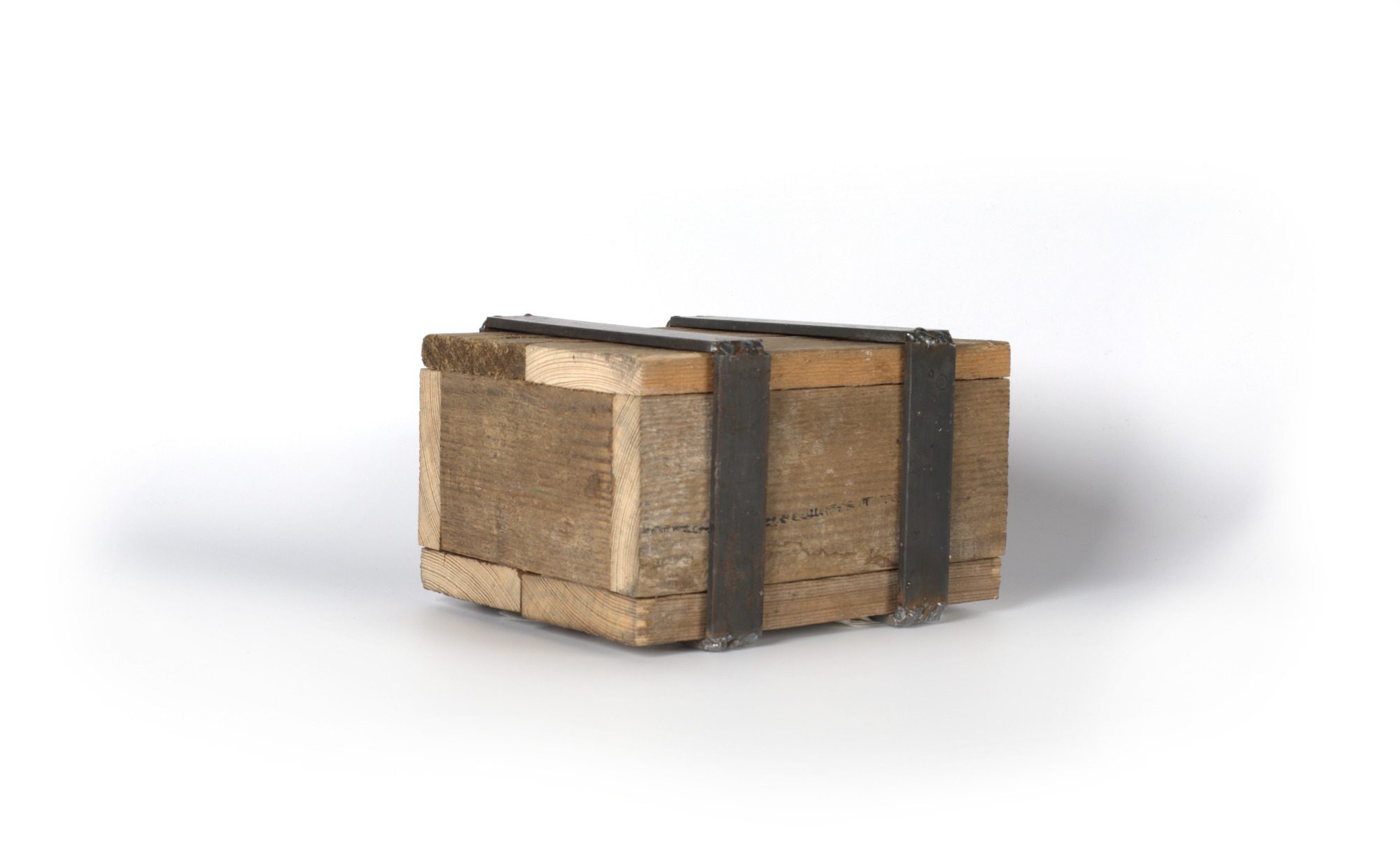 Holz, Stahl, eingeschlossene Bilder, 14x30x21 cm, 2024