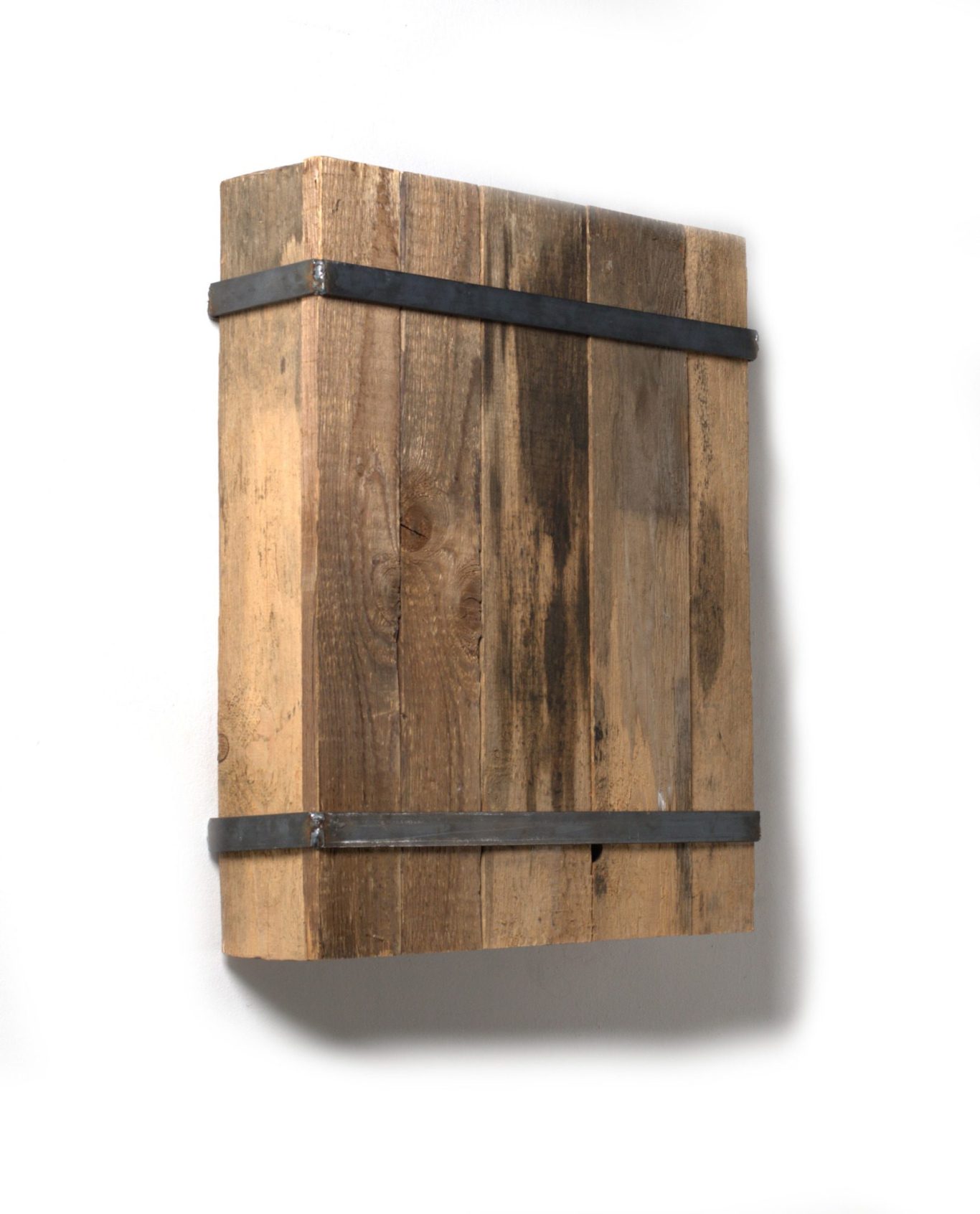 Holz, Stahl, eingeschlossene Bilder, 14x30x21 cm, 2024